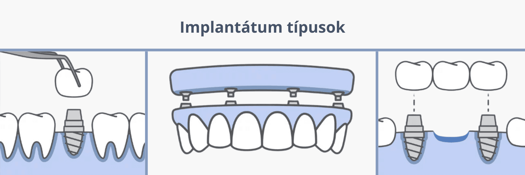 ha komolyabb, vagyis több fogat érintő hiányról/eltávolításról van szó, akkor különböző implantátumok állnak rendelkezésre, melyeket a fogeltávolítással egyidőben is be tudunk ültetni az esetek nagytöbbségében. Két legnépszerűbb eljárás az all-on-4 teljes fogpótlás (4 implantátumra helyezett teljes fogsor) és az azonnal terhelhető implantátum (ilyenkor több implantátumot helyezünk be, speciális módon, és azokra azonnal felkerül az ideiglenes, rögzített fogsor).
